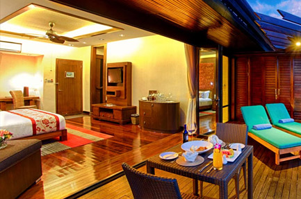 1,300sq ft, offering uninhibited views of the azure waters of the South China Sea. Presents a feast for the eyes whichever way you look. The room features a private balcony with stairs that lead straight into the sea.