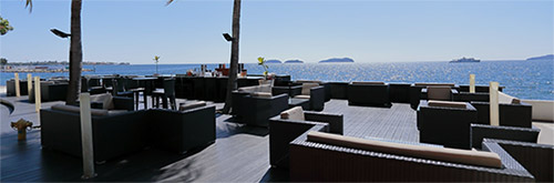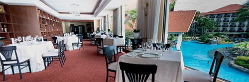 Situated by the side of a beautifully landscaped sea-view pool, enjoy outdoor dining with spectacular scenery and a relaxing atmosphere.  Extensive selection of pasta, seafood dishes and famous wood-fired pizzas are complemented by a lively cocktail menu.